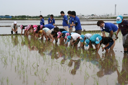 田植えを初めて体験したスクール生は「田んぼの土が柔らかくてびっくりした。ナスは手でちぎるのではなく、ハサミでとることを知った」と話していました。