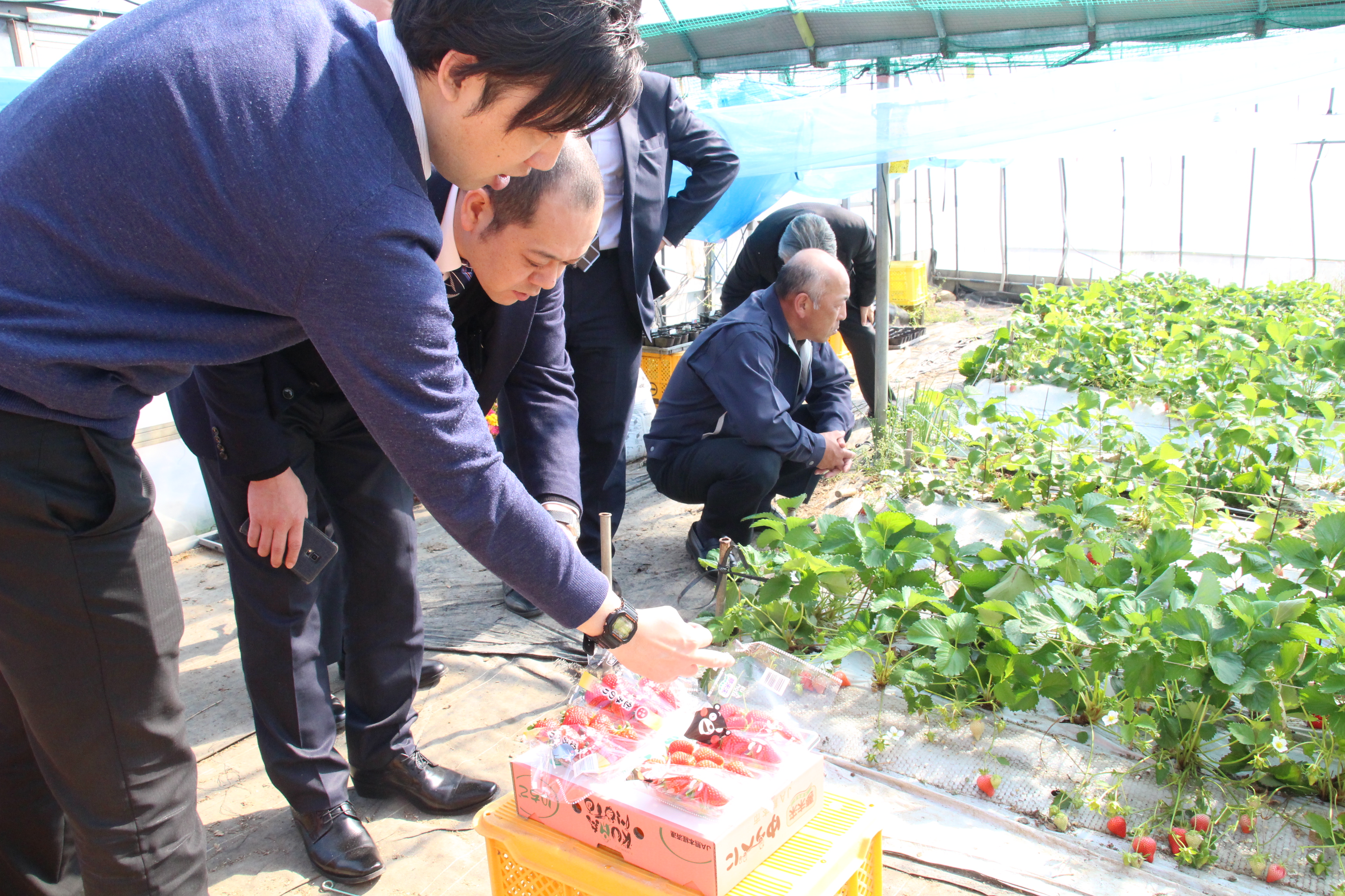 3月13日、14日は、関東から九州までの重点取引市場の担当者約30人を産地に招き、2日間にわたって春夏瓜類・春野菜の情報交換会と品目別生産圃場(ほじょう)視察会を開きました。3月下旬から本格化する出荷期を前に、農産物の生育状況や消費地需要について意見を交換することで、市場占有率拡大並び安定供給等での販売力強化を推進します。