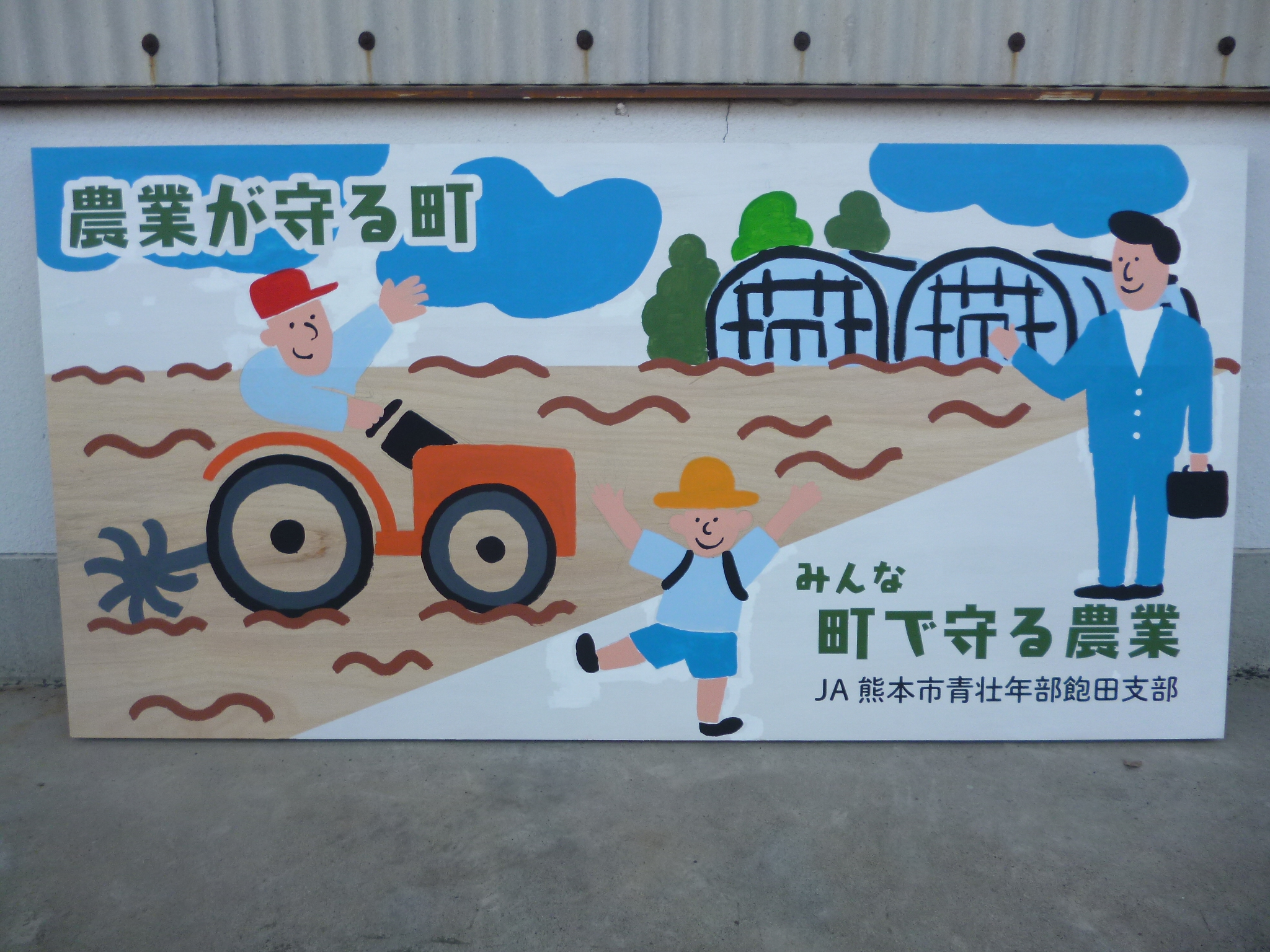 2月27日に開かれた第64回全国青年大会で、JA熊本市青壮年部飽田支部の手作り看板が「地上賞」を受賞しました。授賞式では飽田支部の宮崎誠也さんが市青壮年部を代表して登壇しました。