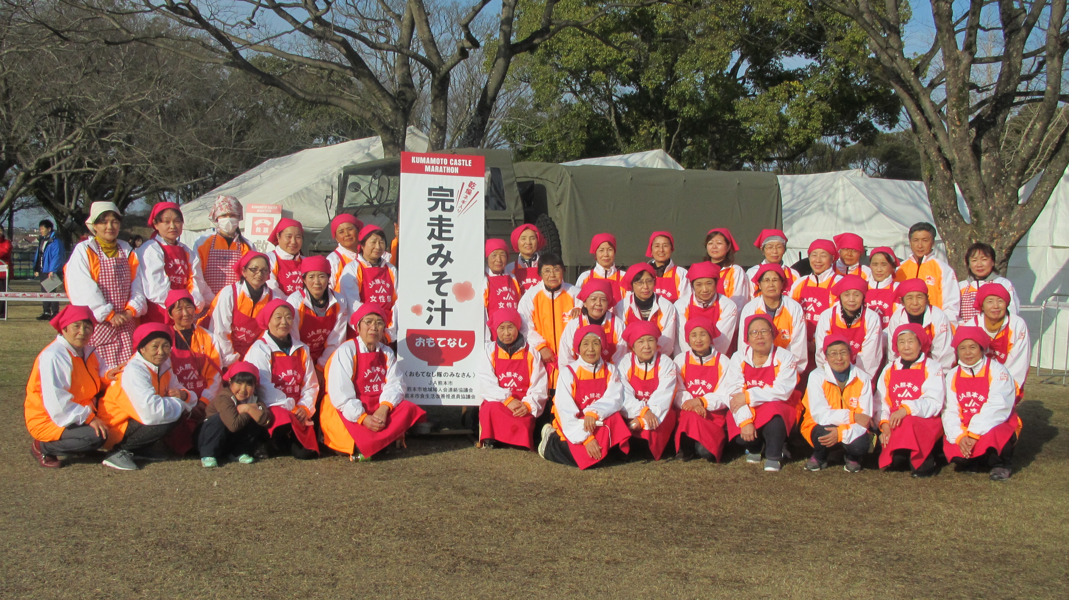 JA熊本市女性部は2月18日、「熊本城マラソン2018」で「おもてなし隊」を結成し、手作りみそのみそ汁を振る舞いました。完走したランナーたちは温かいみそ汁と完走した喜びを味わっていました。