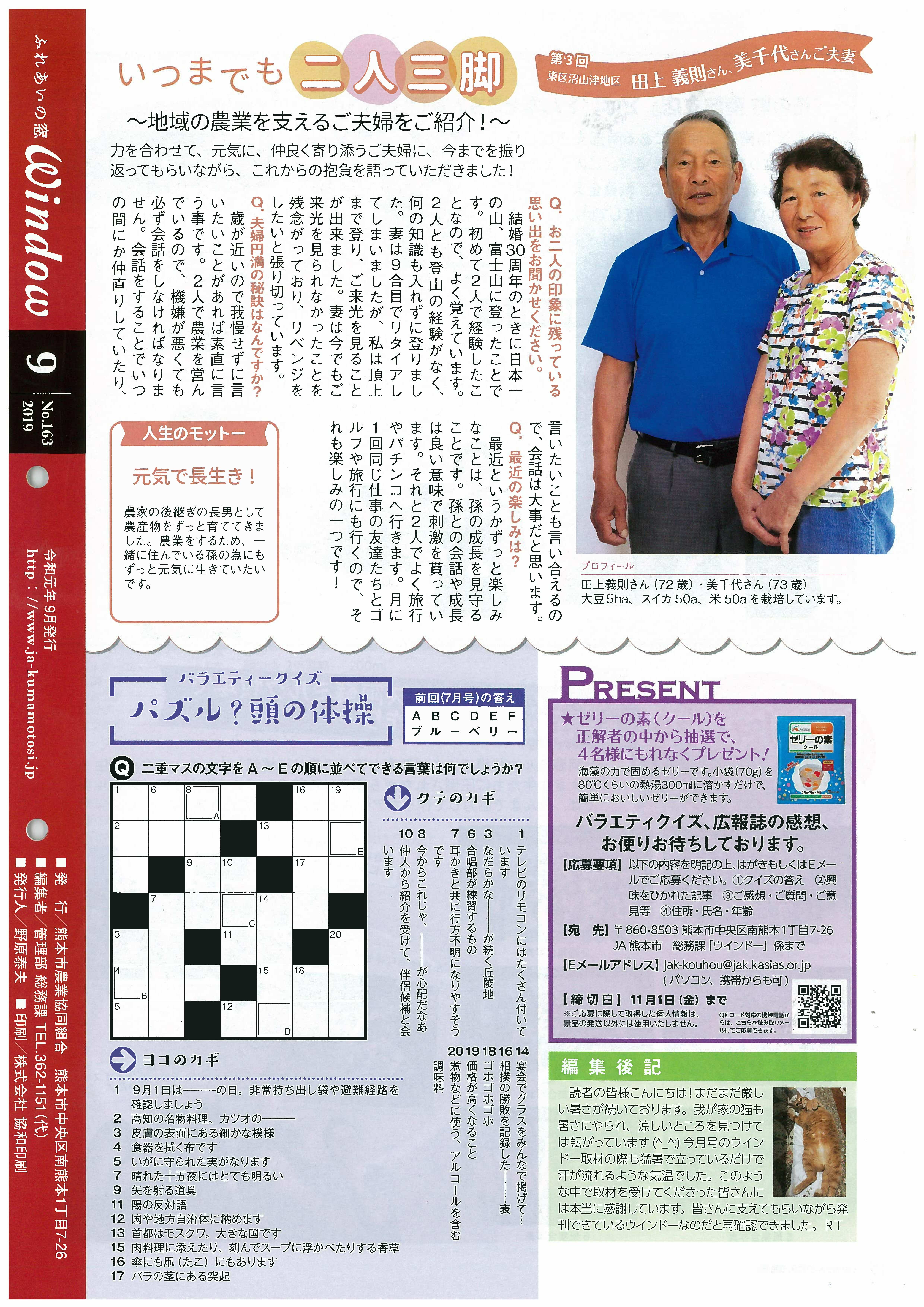 JA熊本市の最新情報をお届けしている広報誌「Window」。